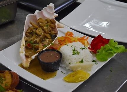 Les produits de la mer occupent aussi une place essentielle. Le court-bouillon de poisson, relevé au citron vert et au piment végétarien, met en valeur la richesse des eaux caribéennes.